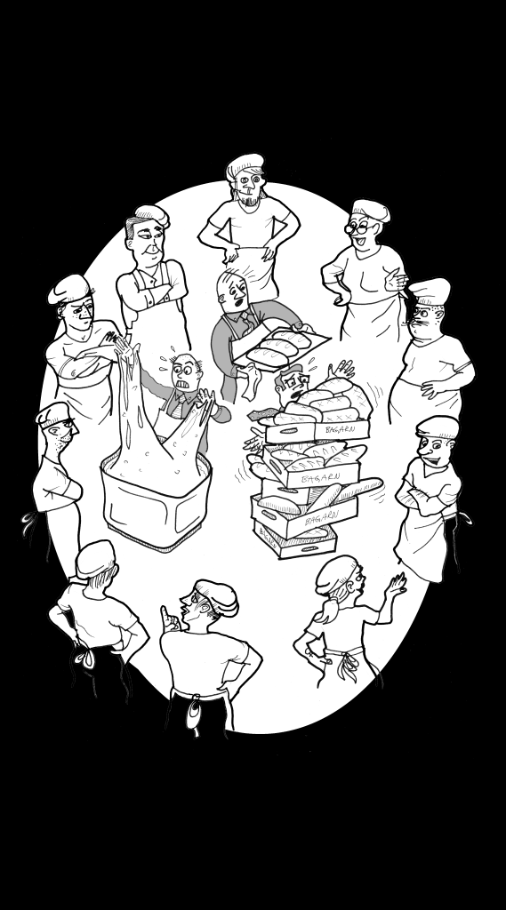 Inte bara trågarna utan även de andra bagarna – maskinskötare och ugnsmakare – som började något senare, var med vid mötet utanför bageriet. Vi som var där för att informera om förhandlingarna jobbade inte i bageriet utan i andra delar av brödfabriken. Vi var dessutom förtroendevalda. Efter vår information, som gjorde de församlade rätt förbannade, sa vi till bagarna att nu går vi en promenad medan ni diskuterar hur ni ska göra.