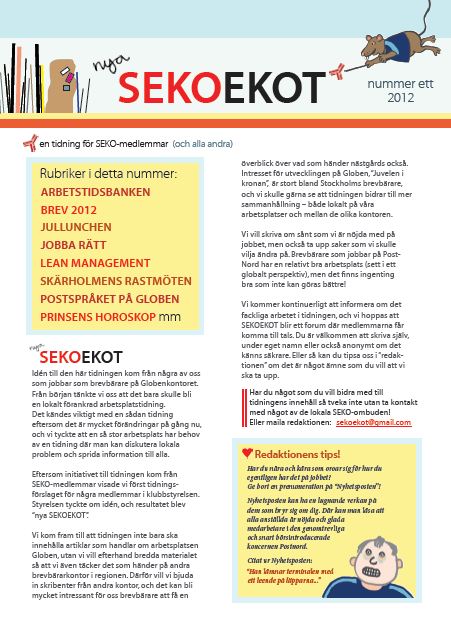 Man kunde också läsa ett bittert formulerat nålstick om en utebliven jullunch som säkerligen gav uttryck för vad många på just den arbetsplatsen kände. Sådant material varvades med artiklar om framgångsrika rastmöten på ett annat kontor, och om fackets jobba rätt-kampanj.
